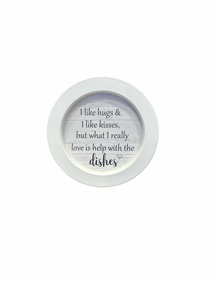 7' Round Framed Sign | I Like Hugs & I Like Kisses, But What I Really Love Is Help With The Dishes