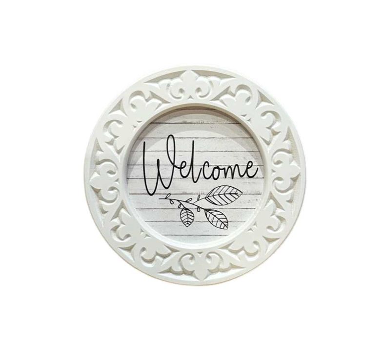 8' Round Engraved Framed Sign | Welcome