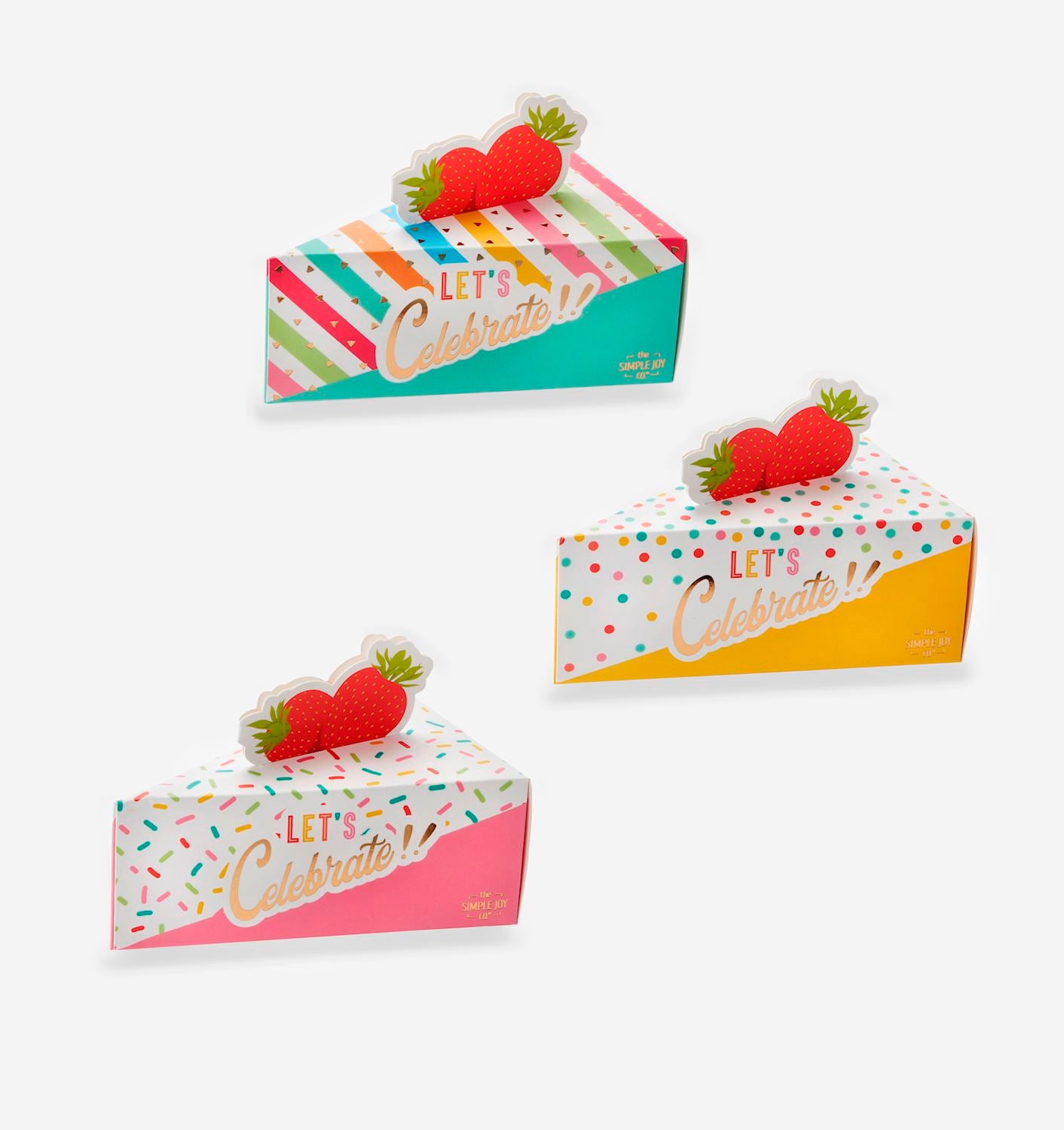 A celebratory gift for loved ones to relax and restore, these delightful Scented Bath Salts (200g) with sugar sprinkles will leave them feeling cleansed and revitalized. Comes packaged in the cutest cake slice paper gift box, decorated with fun prints, bright hues, a strawberry cut-out, and the sentiment LET'S CELEBRATE!! Available in 3 assorted colors and scents: Pink/Berries & Bonbons, Yellow/Peach Bellini, and Blue/ Sprinkle Donuts. Not tested on animals.